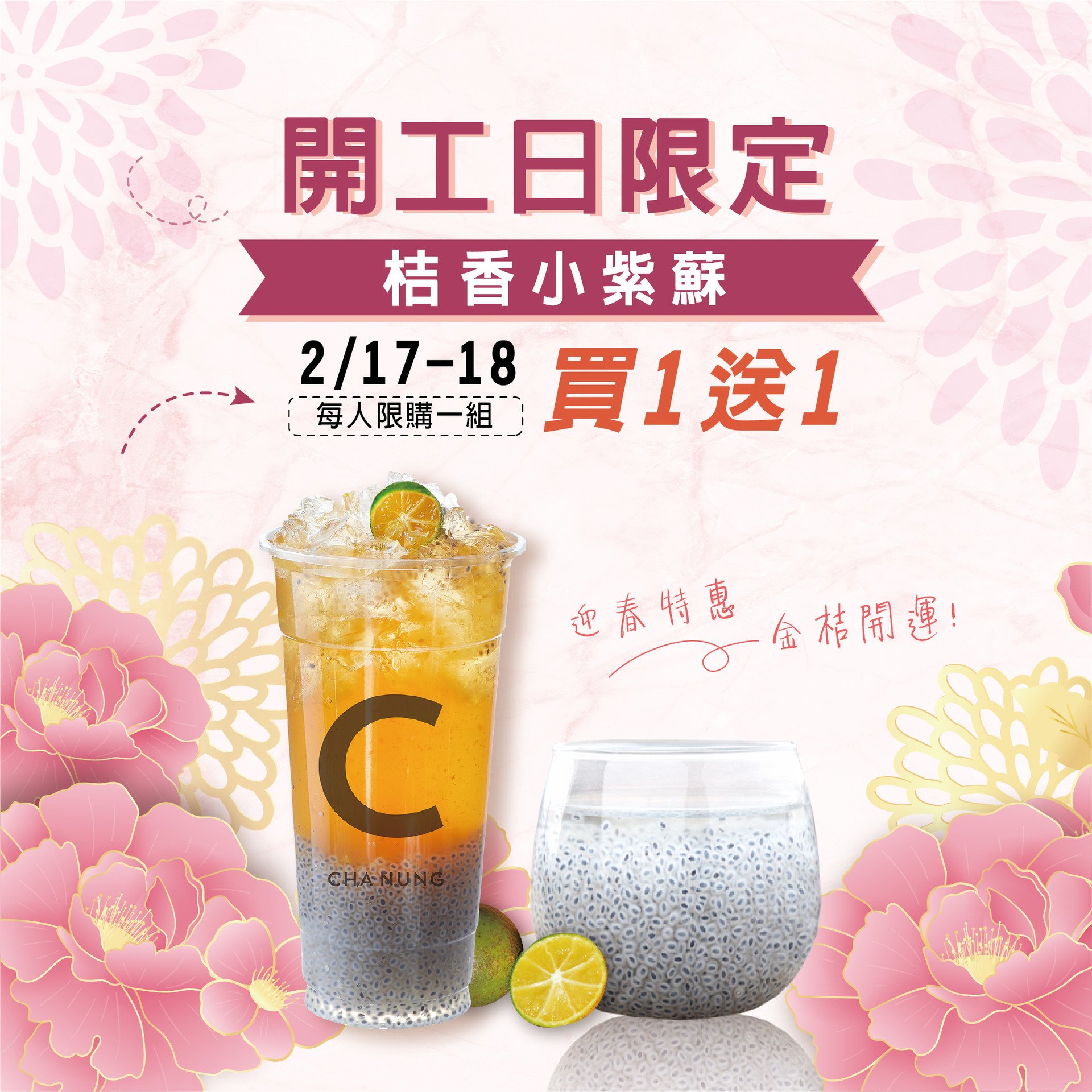 小編搶先預告開工日限定優惠,2/17(三) ~2/18(四)水巷茶弄成年禮重磅回饋「桔香小紫蘇」來店買一送一!!!僅此一檔,大家千萬要把握唷 !!!