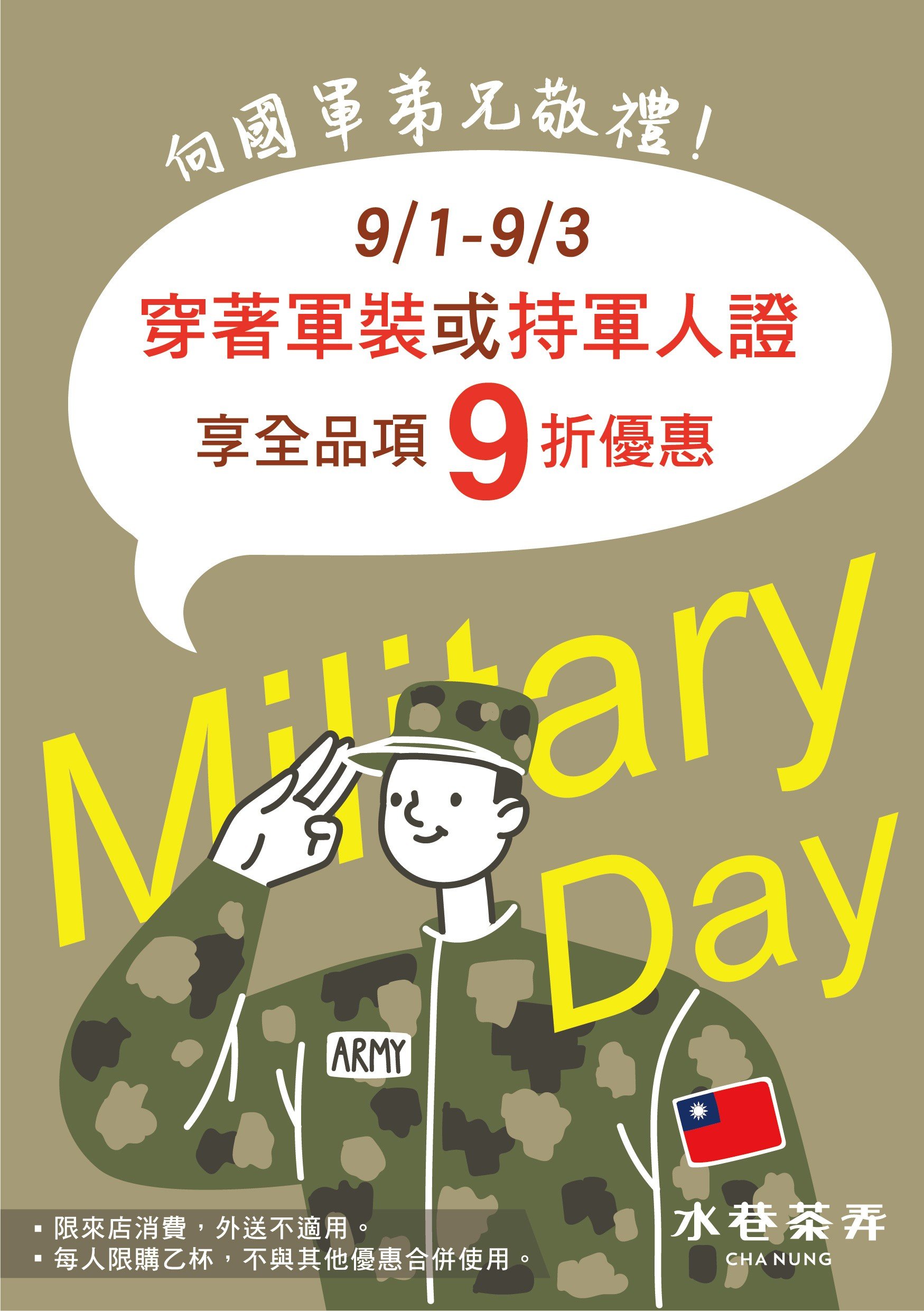 9/1~9/3 穿著軍服或持軍人證