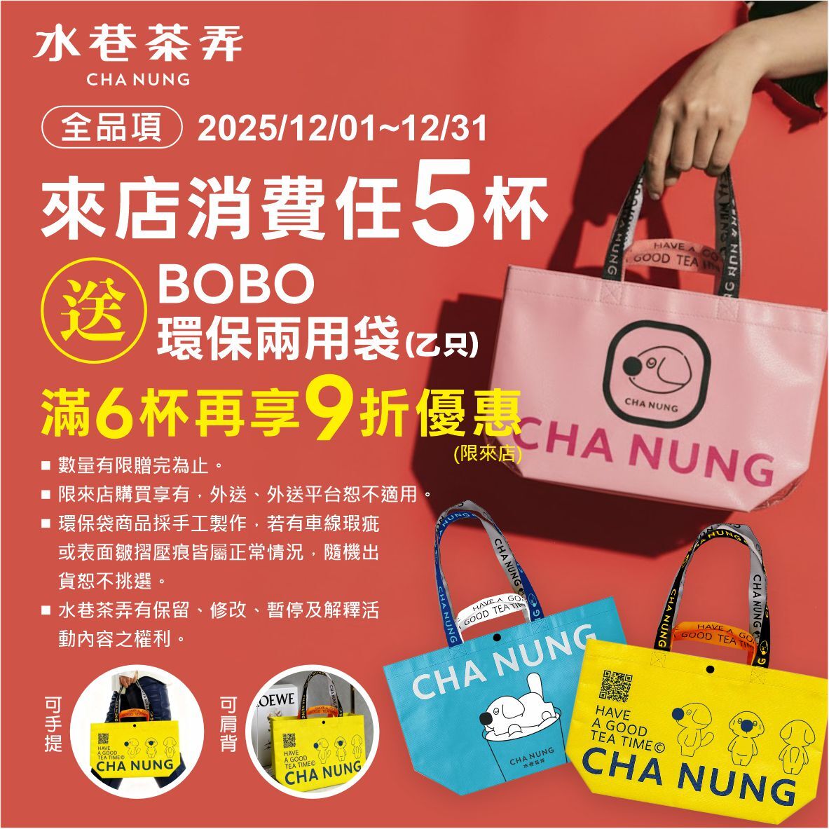 水巷茶弄特製BOBO環保兩用袋,