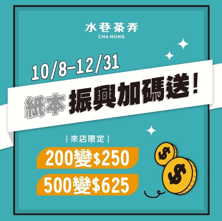 ◤水巷茶弄挺振興券,加碼讓你省鈔大◢