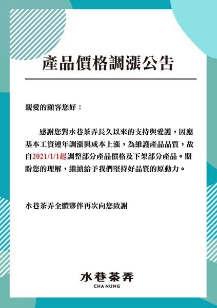 2021年飲品價格調漲公告